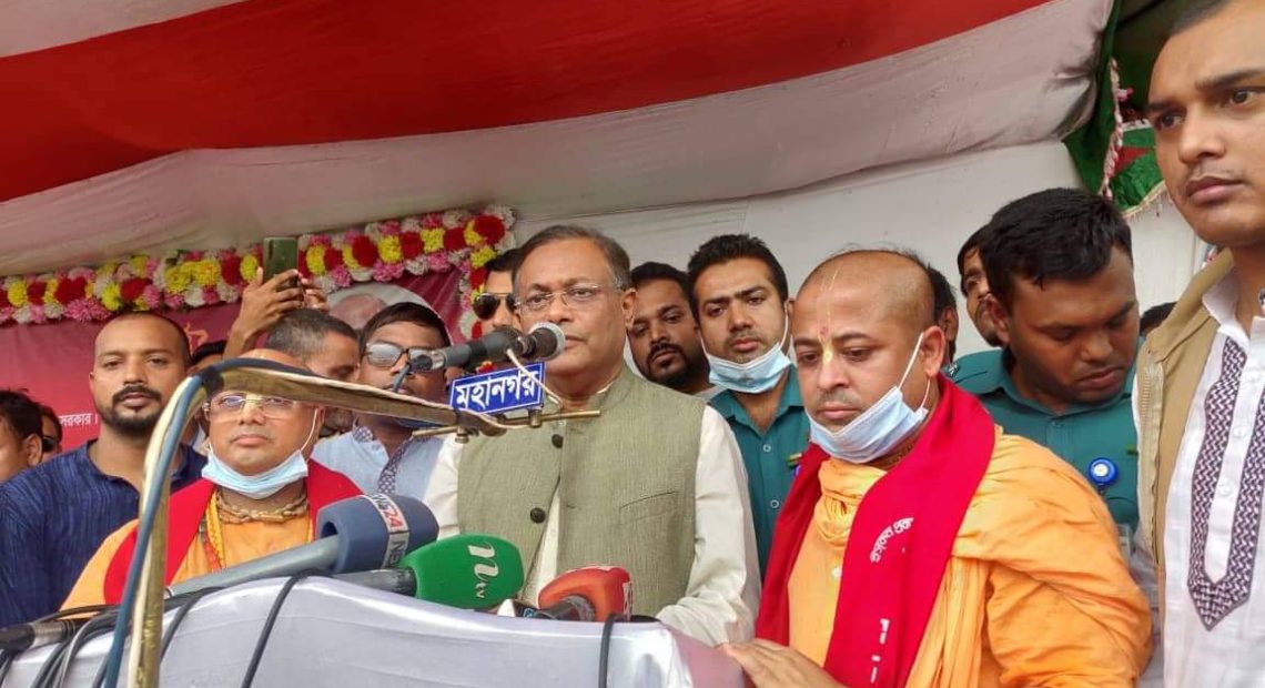 হাছান মাহমুদ বলেন, নির্বাচন অতি সন্নিকটে। তারা আবারও একই স্লোগান নিয়ে হাজির হবে। আমাদের সরকার হিন্দু সম্প্রদায়ের জন্য অনেক কাজ করেছে। ১৯৬৫ সালের যুদ্ধের পর একটি আইন করা হয়েছিল পাকিস্তান আমলে, শত্রু সম্পত্তি আইন। দেশের তিন কোটি মানুষকে শত্রু আখ্যা দিয়ে কোনো আইন হতে পারে না। সে কারণে আমাদের নেত্রী বঙ্গবন্ধু কন্যা শেখ হাসিনা সেই আইন পাল্টে দিয়েছেন। সেই আইনের সুযোগ নিয়ে যে সম্পত্তিগুলো বেহাত হয়েছিল সেগুলো ফিরিয়ে দেয়ার ব্যবস্থা করেছেন। আরও নানাবিধ পদক্ষেপ গ্রহণ করেছেন। যেমন পূজার সময়ের বরাদ্দ এই সরকারের সময়ে কতটুকু এবং আগের সরকারের সময়ে কতটুকু ছিল। এখন চাকুরির ক্ষেত্রেও সচিবালয় থেকে শুরু করে বিচার বিভাগ, সেনাবাহিনী, পুলিশ বাহিনী, প্রশাসনে দেখলে বুঝা যায়, সেখানে ধর্মীয় সংখ্যালঘুদের হার এখন কতটুকু, আগে কতটুকু ছিল। এই বিশ্লেষণ করলে বুঝা যায়, আমাদের সরকার সবার অধিকার নিশ্চিতের জন্য কি কাজ করছে।