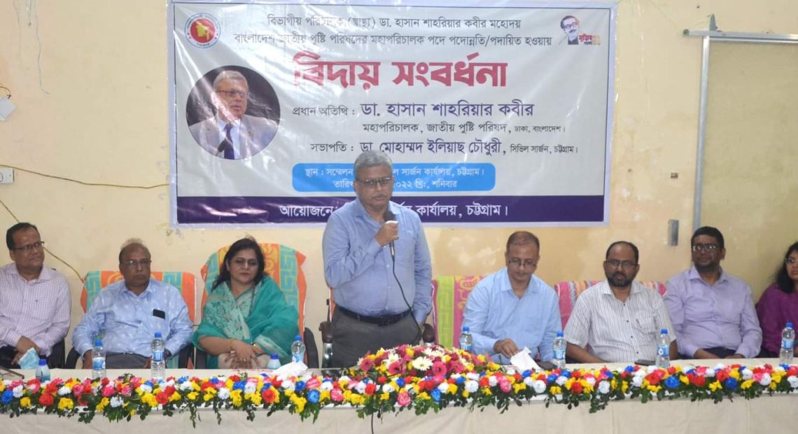 সংবর্ধনা অনুষ্ঠানে বিদায়ী চট্টগ্রাম বিভাগীয় স্বাস্থ্য পরিচালক ও বাংলাদেশ জাতীয় পুষ্টি পরিষদের মহাপরিচালক ডা. হাসান শাহরিয়ার কবীর বলেন, সর্বস্তরের কর্মকর্তা-কর্মচারীদের আন্তরিক সহযোগিতায় স্বাস্থ্যসেবার মানোন্নয়নে চট্টগ্রাম অনেকদূর এগিয়ে গেছে। বিভাগীয় স্বাস্থ্য পরিচালক হিসেবে চট্টগ্রামে প্রায় তিন বছর ৪ মাস কর্মকালীন সময়ে মাননীয় প্রধানমন্ত্রী জাতির পিতার সুযোগ্য কন্যা শেখ হাসিনার নির্দেশনা মতে বিভিন্ন সদর হাসপাতাল, উপজেলা স্বাস্থ্য কমপ্লেক্স ও সাব-সেন্টারগুলোতে নিয়মিত পরিদর্শন অব্যাহত রেখে জনগণের দৌরগোড়ায় চিকিৎসাসেবা পৌঁছে দেয়া হয়েছে। এর ধারাবাহিকতা রক্ষা করতে হবে। প্রধানমন্ত্রীর আন্তরিকতায় পৃথিবীর মানচিত্রে বাংলাদেশ একটি উজ্জ্বল নক্ষত্র।