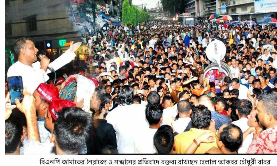 সারা দেশজুড়ে বিএনপির অপরাজনীতি ও নৈরাজ্যের বিরুদ্ধে চট্টগ্রাম মহানগর আওয়ামী লীগ নেতা হেলাল আকবর চৌধুরী বাবরের নেতৃত্বে এক বিশাল বিক্ষোভ মিছিল ও সমাবেশ আজ শুক্রবার বিকাল ৪ ঘটিকায় অনুষ্ঠিত হয়েছে।