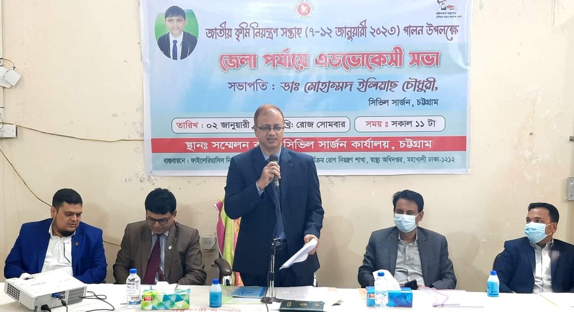 জাতীয় কৃমি নিয়ন্ত্রণ সপ্তাহ (৭-১২ জানুয়ারি) উপলক্ষে আজ ২ জানুয়ারি ২০২৩ ইংরেজি সোমবার সকাল ১১টায় নগরীর আন্দরকিল্লাস্থ চট্টগ্রাম জেলা সিভিল সার্জন কার্যালয়ের অডিটরিয়ামে জেলা পর্যায়ের এডভোকেসী সভা অনুষ্টিত হয়। স্বাস্থ্য অধিদপ্তরের রোগ নিয়ন্ত্রণ শাখার ফাইলেরিয়াস নির্মূল, কৃমি নিয়ন্ত্রণ ও ক্ষুদে ডাক্তার কার্যক্রমের বাস্তবায়নে জেলা সিভিল সার্জন কার্যালয় সভার আয়োজন করেন।