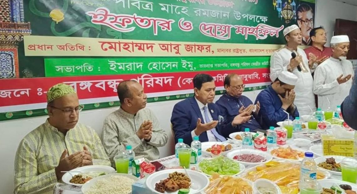 বঙ্গবন্ধু পরিষদ আবুধাবি কেন্দ্রীয় কমিটির উদ্যোগে ইফতার ও দোয়া মাহফিল আয়োজন করা হযেছে। শুক্রবার ৭ এপ্রিল বাদে আছর আবুধাবির বাংলাদেশ সমিতি মিলনায়তনে সংগঠনের ভারপ্রাপ্ত সভাপতি ইমরাদ হোসেন ইমুর সভাপতিত্বে অনুষ্ঠিত ইফতার মাহফিল পরিচালনা করেন সাধারণ সম্পাদক নাসির উদ্দিন তালুকদার। এতে প্রধান অতিথি হিসেবে উপস্থিত ছিলেন আমিরাত নিযুক্ত বাংলাদেশের রাস্ট্রদূত মোহাম্মদ আবু জাফর। বিশেষ অতিথি হিসেবে উপস্থিত ছিলেন দুতাবাস সচিব মাজহারুল ইসলাম, বাংলাদেশ সমিতির সভাপতি ইন্জিনিয়ার মোয়াজ্জেম হোসেন, জনতা ব্যাংক সিইও মোহাম্মদ কামরুজ্জামান। রোজার তাৎপর্ষ নিয়ে বক্তব্য রাখেন মাওলানা আলমগীর হোসেন। এসময়ে সংগঠনের সহ সভাপতি মোহাম্মদ জামশেদ, যুগ্ম সাধারণ সম্পাদক মাঈন উদ্দিন, সহ সাধারণ সম্পাদক গোলাম কাদের ইফতি আবু তাহের তারেক ,জোবাদুল করিম,সহ সমমনা বিভিন্ন সংগঠনের নেতৃবৃন্দ ও বিশিষ্ট ব্যক্তিবর্গ উপস্থিত ছিলেন।