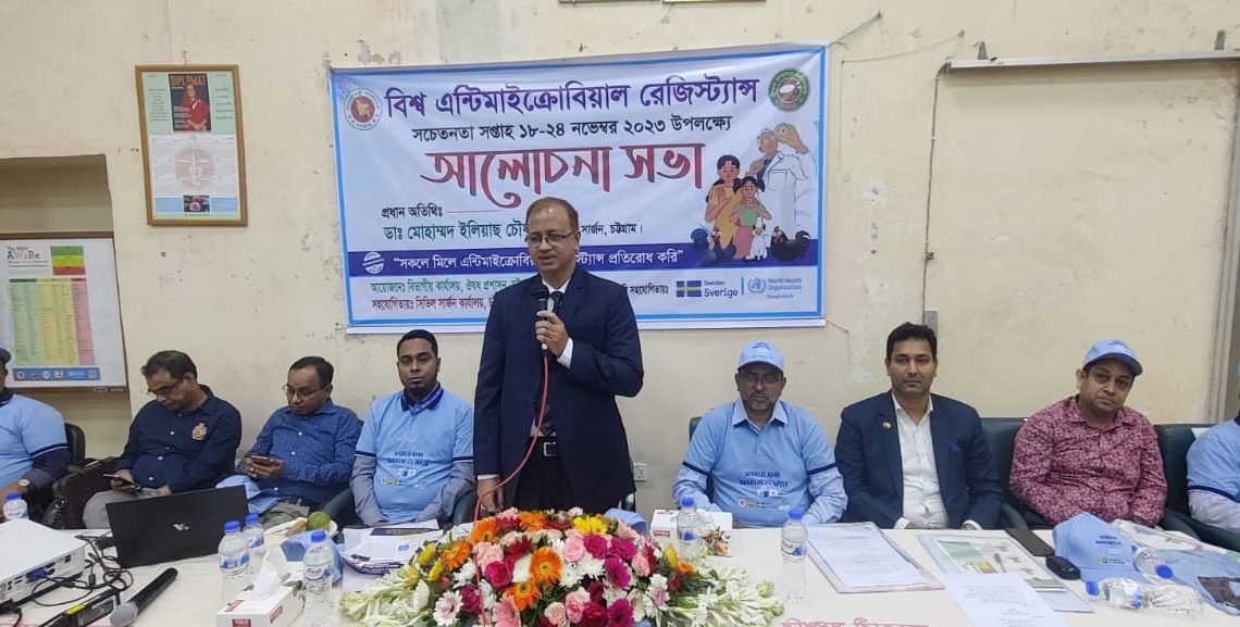 মঙ্গলবার (২১ নভেম্বর) সকাল ১২টায় চট্টগ্রাম জেলা সিভিল সার্জন কার্যালয় অডিটোরিয়ামে অনুষ্ঠিত ‘বিশ্ব এন্টিমাইক্রোবিয়াল রেজিস্ট্যান্স’ বিষয়ক আলোচনা সভায় বক্তারা এসব কথা বলেন। এদিন বিশ্ব এন্টিমাইক্রোবিয়াল সচেতনতা সপ্তাহ উপলক্ষে চট্টগ্রাম জেলা সিভিল সার্জন কার্যালয় এবং ঔষধ প্রশাসন অধিদফতরের আয়োজনে র্যালি ও আলোচনা সভা অনুষ্ঠিত হয়। এবারের প্রতিপাদ্য : “সকলে মিলে এন্টিমাইক্রোবিয়াল রেজিস্ট্যান্স প্রতিরোধ করি”।