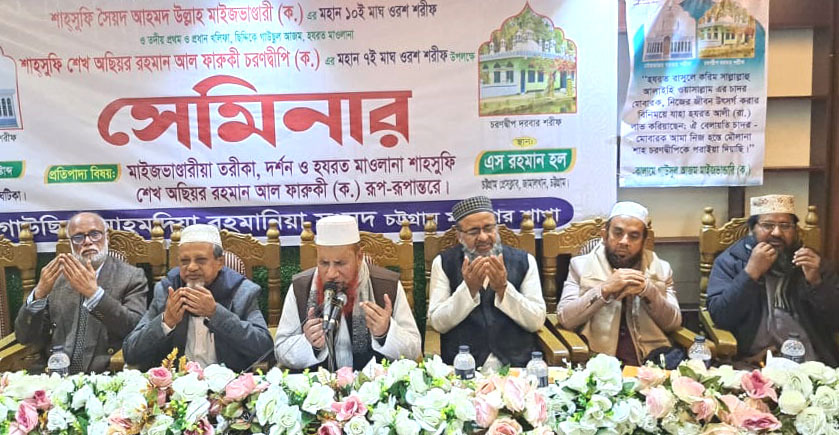 হুজুর গাউসুল আজম মাইজভান্ডারীর (র.) প্রথম ও প্রধান খলিফা হজরত মাওলানা শাহসুফী শেখ অছিয়র রহমান ফারুকী চরণদ্বীপির (র.) আগামী ৭ মাঘ ১৪৩০ বাংলা, ২১ জানুয়ারি ২০২৪ ইংরেজি রোববার অনুষ্ঠিতব্য ১৩২তম ‘বেলায়ত ও বেলাদত’ বার্ষিকী ওরশ শরীফ উপলক্ষে শনিবার বিকেলে চট্টগ্রাম প্রেসক্লাবের এস.রহমান হলে ‘মাইজভান্ডারীয়া তরিকা, দর্শন ও হজরত মাওলানা শেখ অছিয়র রহমান আল ফারুকী (র.) রূপ রূপান্তরে’ শীর্ষক সেমিনার অনুষ্ঠিত হয়। চরণদ্বীপ দরবার শরীফের সাজ্জাদানশীন পীরে তরিকত হজরতুলহাজ্ব শাহজাদা শেখ আবু মুহাম্মদ শহীদুল্লাহ ফারুকীর (ম.) সভাপতিত্বে ও শাহজাদা সানাউল্লাহ ফারুকীর সঞ্চালনায় অনুষ্ঠিত সেমিনারে প্রধান অতিথি ছিলেন চট্টগ্রাম বিশ্ববিদ্যালয়ের (চবি) সাবেক ভাইস চ্যান্সেলর প্রফেসর ড. ইফতেখার উদ্দিন চৌধুরী। প্রধান আলোচক ছিলেন জামেয়া আহমদিয়া সুন্নিয়া আলীয়া মাদ্রাসার অধ্যক্ষ আল্লামা কাজী আবদুল আলীম রেজভী। মূল প্রবন্ধ উপস্থাপন করেন চবি’র বাংলা বিভাগের সহযোগী অধ্যাপক ড. মুহাম্মদ শেখ সাদী। উদ্বোধনী বক্তব্য রাখেন আল্লামা শাহজাদা সাইফুল্লাহ ফারুকী। আলোচনায় অংশ নেন প্রফেসর ড. নু.ক.ম আকবর হোসেন, ড. সেলিম জাহাঙ্গীর, ড. মুহাম্মদ নুরুন্নবী, প্রফেসর দবির উদ্দিন খান, ডা. আশীষ কুমার চৌধুরীসহ বিভিন্ন শিক্ষাবিদ, জ্ঞানী-গুণী ও ওলামায়ে কেরাম। গাউছিয়া আহমদিয়া রহমানিয়া সংসদ চট্টগ্রাম মহানগর শাখার ব্যবস্থাপনায় সেমিনার অনুষ্ঠিত হয়। সেমিনার শেষে আয়োজক কমিটির সভাপতি আলহাজ্ব মুহাম্মদ জাহাঙ্গীর আলম ও সেক্রেটারি মুহাম্মদ আজিজ উদ্দীনের ধন্যবাদ জ্ঞাপনে সভাপতির মোনাজাতে দেশ ও জাতির কল্যাণ কামনায় দোয়া-মুনাজাত করা হয়।