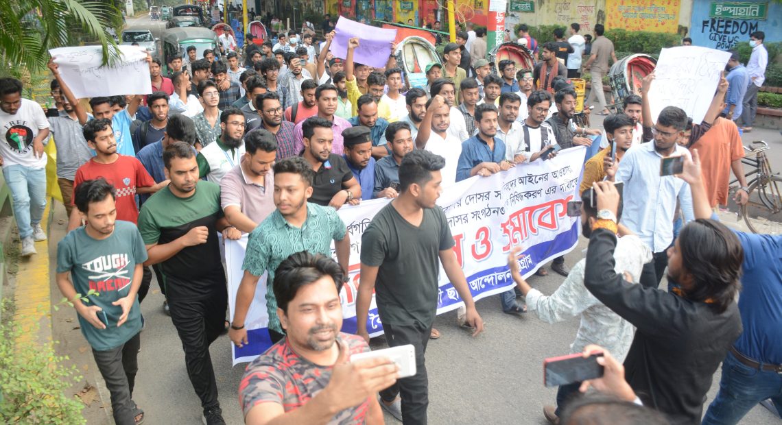 আওয়ামী লীগ আমলে গড়ে ওঠা লুটেরা ব্যবসায়ী সিন্ডিকেট ভেঙে দ্রব্য মূল্য নিয়ন্ত্রণে এনে সাধারণ মানুষকে স্বস্তি দেয়ার দাবি করেছেন বৈষম্য বিরোধী ছাত্র আন্দোলনের নেতাকর্মীরা। পাশাপাশি গণ অভ্যুত্থানের বিরুদ্ধে অবস্থান নেয়া ফ্যাসিবাদের দোসর সাংবাদিক ও আন্দোলনে গুলি করে ছাত্র হত্যার সঙ্গে জড়িত পুলিশ সদস্যদের গ্রেপ্তারের দাবিও করেন তারা।