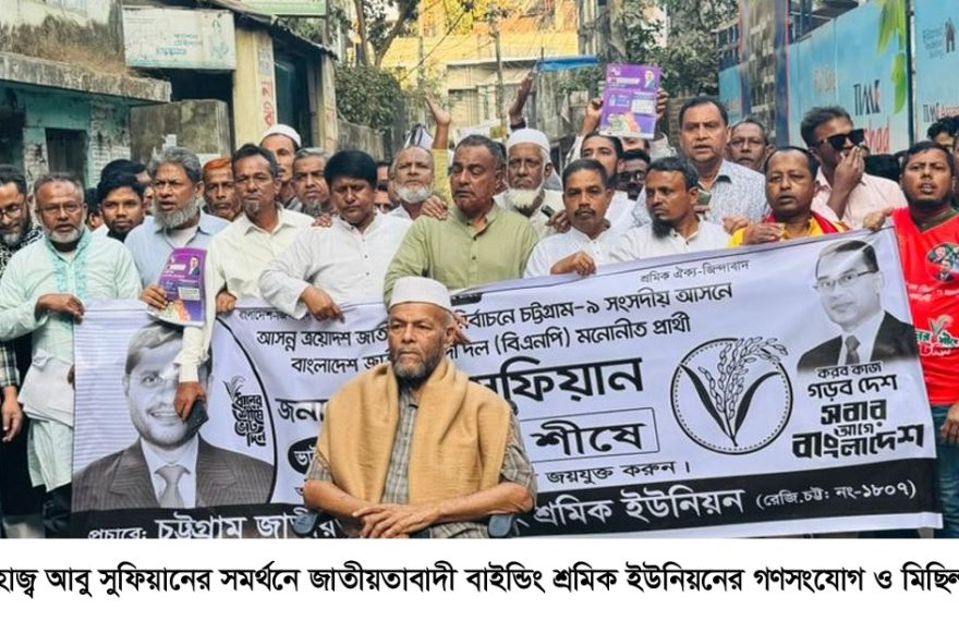 ============================ ৩০ জানুয়ারি শুক্রবার বিকাল ৩ ঘটিকায় ধানের শীষের প্রার্থী আলহাজ্ব আবু সুফিয়ানের সমর্থনে জাতীয়তাবাদী বাইন্ডিং শ্রমিক ইউনিয়নের উদ্যোগে গণসংযোগ মিছিল পূর্ব সমাবেশ অনুষ্ঠিত হয়। সংগঠনের সাধারণ সম্পাদক শফিকুর রহমান মজুমদারের সভাপতিত্বে এ সময় প্রধান অতিথি হিসেবে বক্তব্য রাখেন বিএনপির কেন্দ্রীয় শ্রমিক সম্পাদক চট্টগ্রাম বিভাগীয় শ্রমিকদের সভাপতি বীর মুক্তিযোদ্ধা আলহাজ্ব এ এম নাজিম উদ্দিন। প্রধান […]