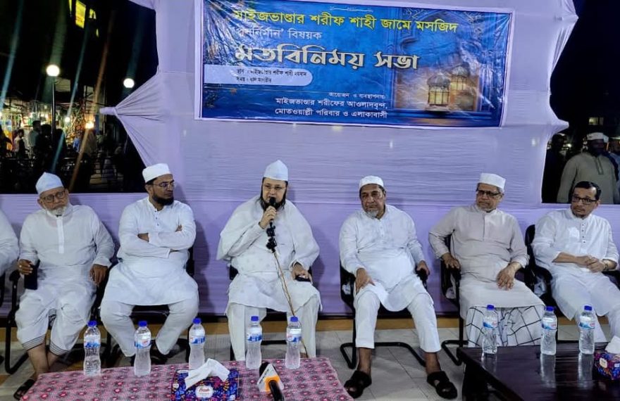 মো. এমরান হোসেন, ফটিকছড়ি(চট্টগ্রাম)প্রতিনিধি পুন নির্মিত হতে যাচ্ছে চট্টগ্রামের ফটিকছড়ির মাইজভান্ডার দরবার শরীফের শাহী জামে মসজিদ। এ উপলক্ষে শুক্রবার (১১এপ্রিল) রাতে মতবিনিময় সভা মাইজভান্ডার শরীফে শাহী ময়দানে মাইজভান্ডার শরীফের সকল আওলাদ, মোতওয়াল্লী পরিবার ও এলাকাবাসী উদ্যোগ ও ব্যবস্থাপনায় অনুষ্ঠিত হয়েছে । মতবিনিময় সভায় সভাপতিত্ব করেন গাউছিয়া আহমদিয়া মনজিলের সাজ্জাদানশীন শাহসূফি সৈয়দ সহিদুল হক মাইজভান্ডারী। […]